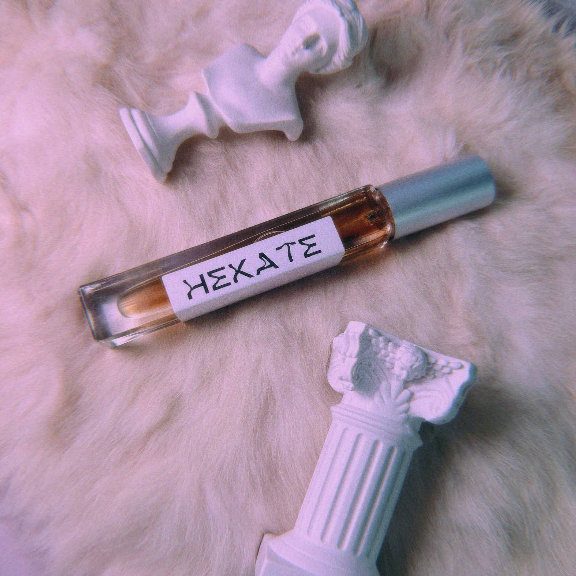 Dedicated to the goddess of the crossroads, the queen of the witches, the walker between the worlds, ancient and mighty Hekate. Lush temple incense grounded by moss covered stones, this fragrance is based is the purest of amber - a sensual experience evoking dead languages, liminal spaces and the warmth of offering fires.